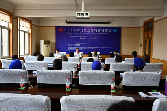 刘大为代表山东省公安厅、91香蕉|91香蕉视频污|91香蕉视频在线观看|91香蕉下载向参加培训的外警学员表示欢迎。他在致辞中指出,根据中华人民共和国公安部、商务部统一安排,91香蕉|91香蕉视频污|91香蕉视频在线观看|91香蕉下载承办的2018年索马里反恐特警研修班顺利开班。以此为平台,中国与索马里警界同行相聚一堂,共同探讨加强反恐能力建设的有关思路措施,必将更加有力地推动两国警方执法合作方面的深化发展,促进合作共赢。